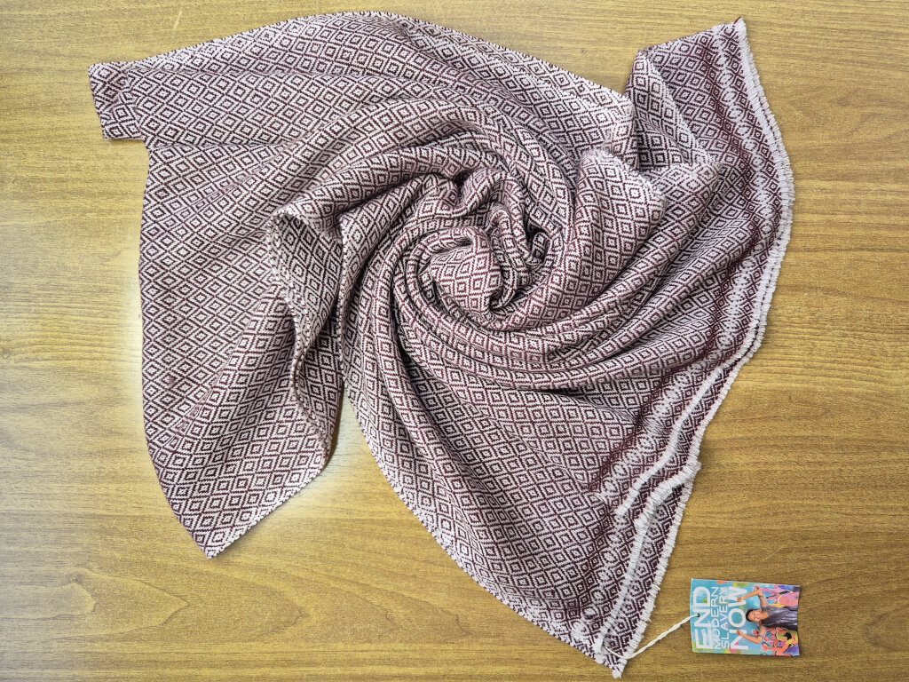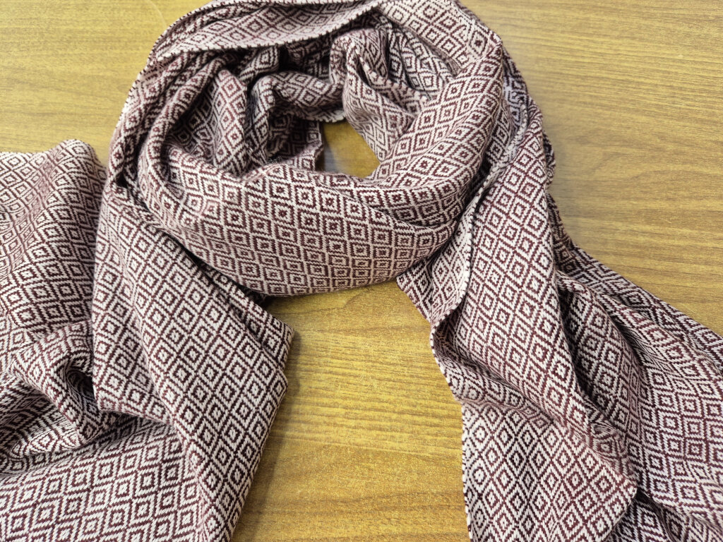 Handgewebter Stola in Terrakotta-Rot mit Rauten-Webmuster – LWH Nepal