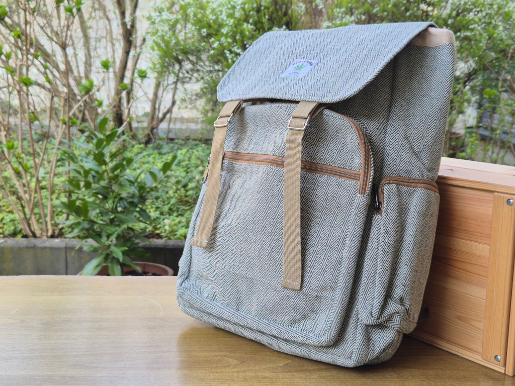 Dieser Hanf-Rucksack ist bewusst ruhig gehalten. Keine auffälligen Muster, keine starken Kontraste – stattdessen ein klares Design, das sich im Alltag unaufdringlich einfügt.
