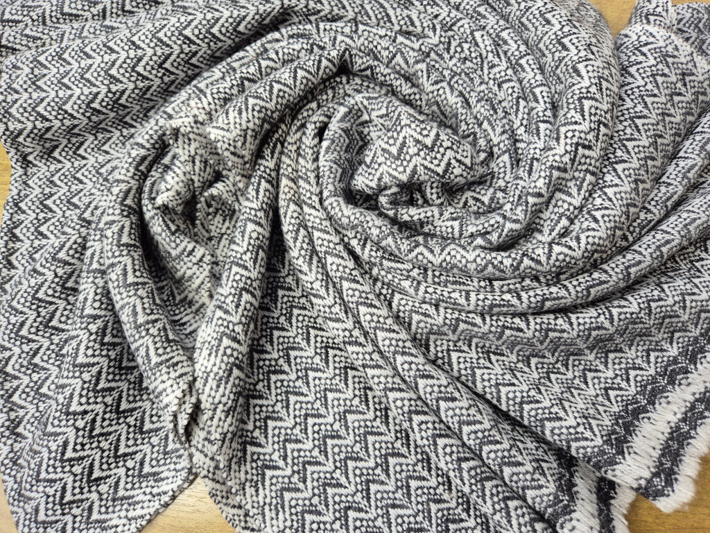 Kaschmir-Schal mit Chevron-Struktur | Anthrazit-Weiß | handgefertigt von LWH | 68×196 cm