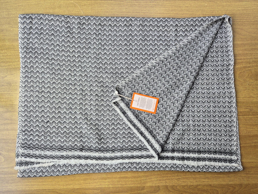 Handgewebter Kaschmir-Schal mit Chevron-Struktur | Anthrazit-Weiß | 68×196 cm