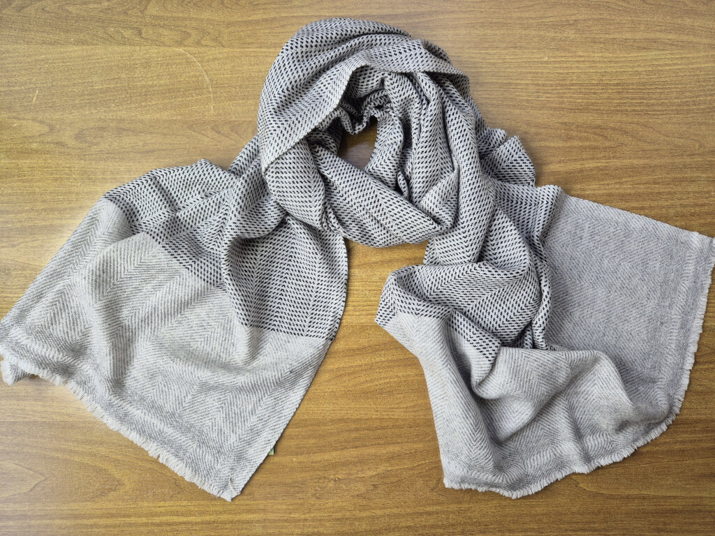 Kaschmir-Schal in Grau mit Strukturmuster & Fischgrät-Design | handgefertigt von LWH | 71×196 cm