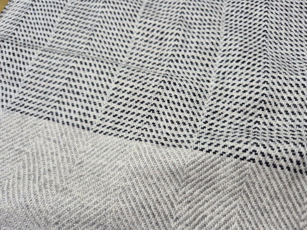 Preview: Kaschmir-Schal in Grau mit Strukturmuster & Fischgrät-Design | handgefertigt von LWH | 71×196 cm
