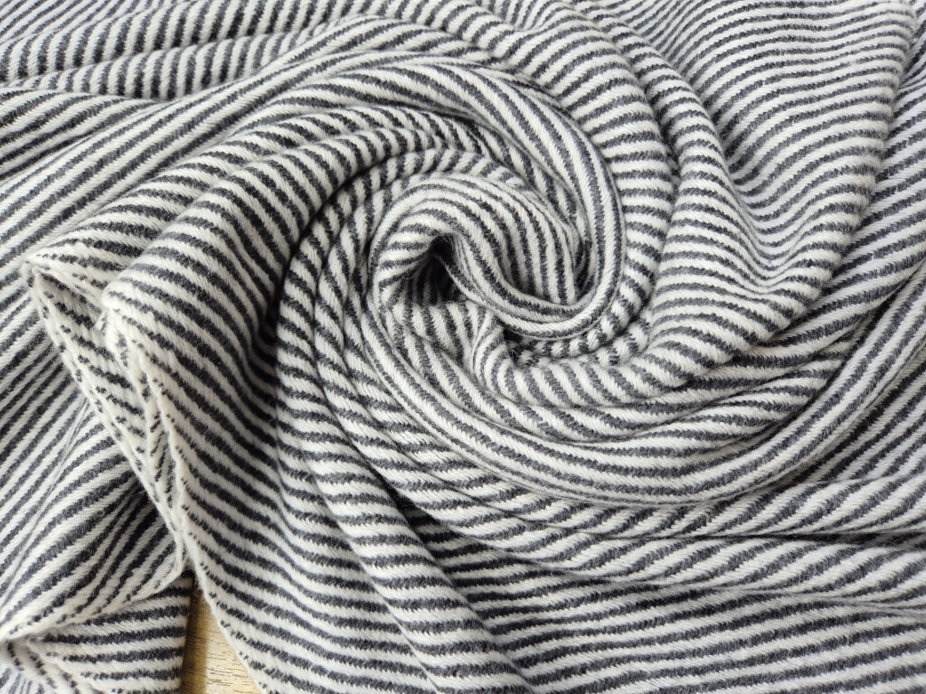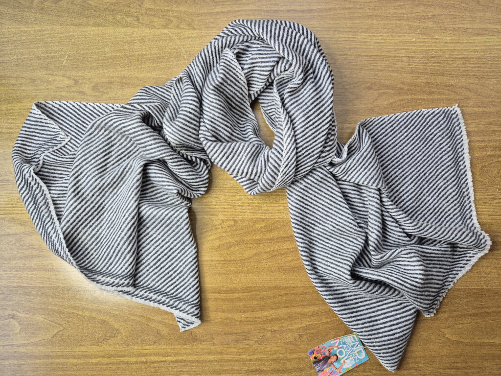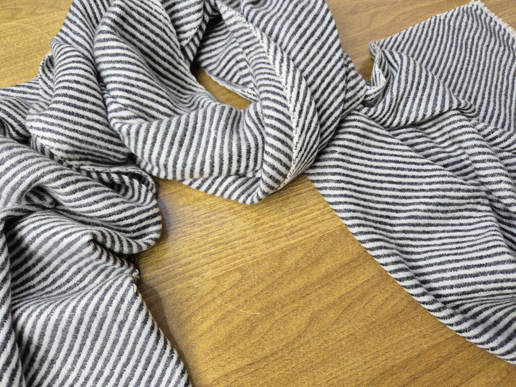 Flauschiger Kaschmir-Schal in Rauchgrau & Perlweiß | Streifen-Struktur | 66×202 cm