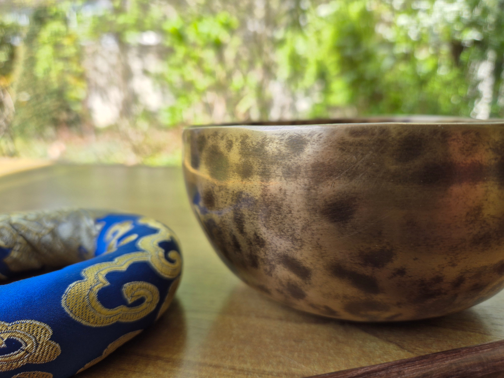 Diese Klangschale wurde traditionell in Nepal handgefertigt und direkt aus Nepal bezogen.