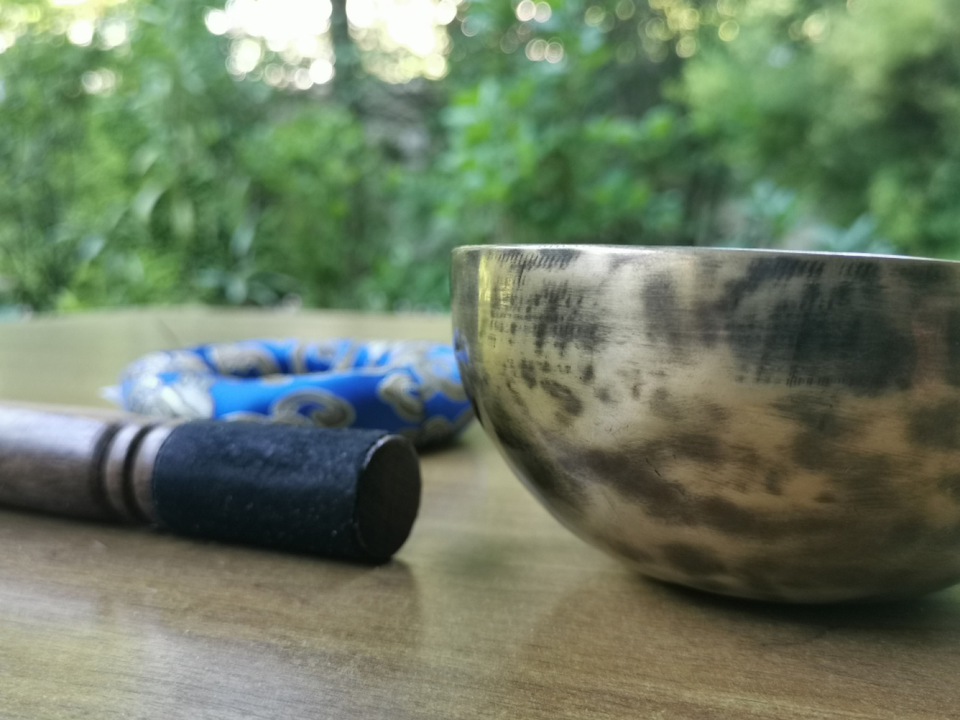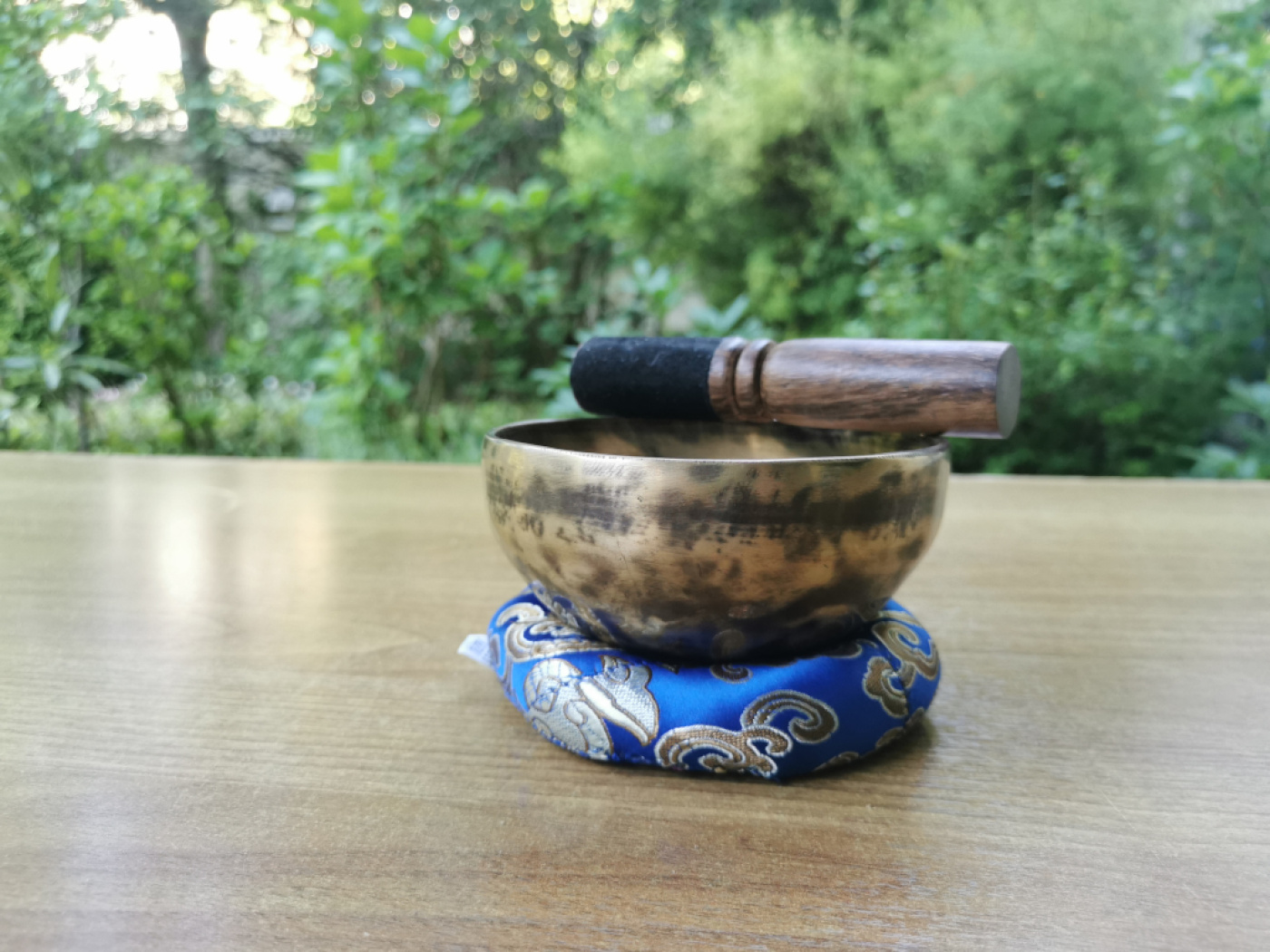 Mit einem Durchmesser von etwa 11–12 cm und einem Gewicht von rund 400–435 g erzeugt die Schale einen klaren, direkten Ton mit einem angenehmen, tragenden Nachschwingen. Sie eignet sich ideal für Einsteiger, für kleine Klangräume oder als persönliche Begleiterin auf dem Schreibtisch, Altar oder Meditationsplatz. Durch ihre kompakte Form lässt sie sich leicht führen – sowohl beim Anschlagen als auch beim Reiben entlang des Randes.
