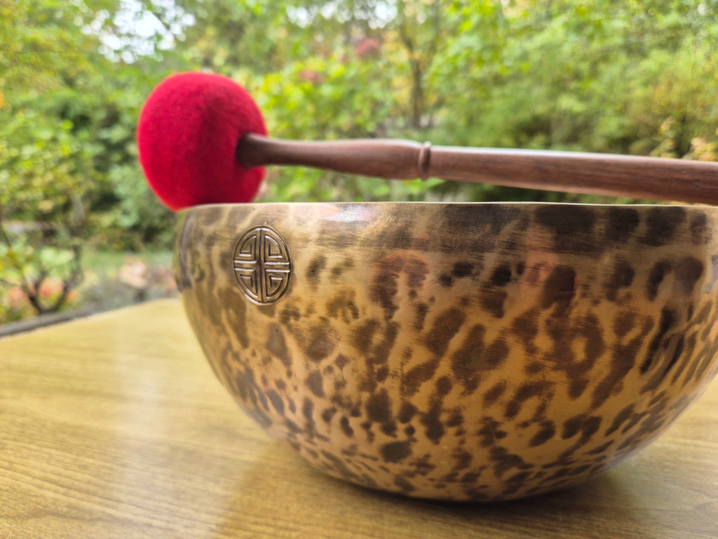 Mit einem Durchmesser von ca. 29–29,5 cm und einem Gewicht zwischen 2,36–2,71 kg gehört sie zu den großen Klangschalen mit kräftigem, tiefem Grundton. Ihr Klang öffnet sich voll und raumfüllend – er trägt weit, schwingt lange nach und eignet sich besonders für Meditation, Yoga, Klangbäder und energetische Körperarbeit.