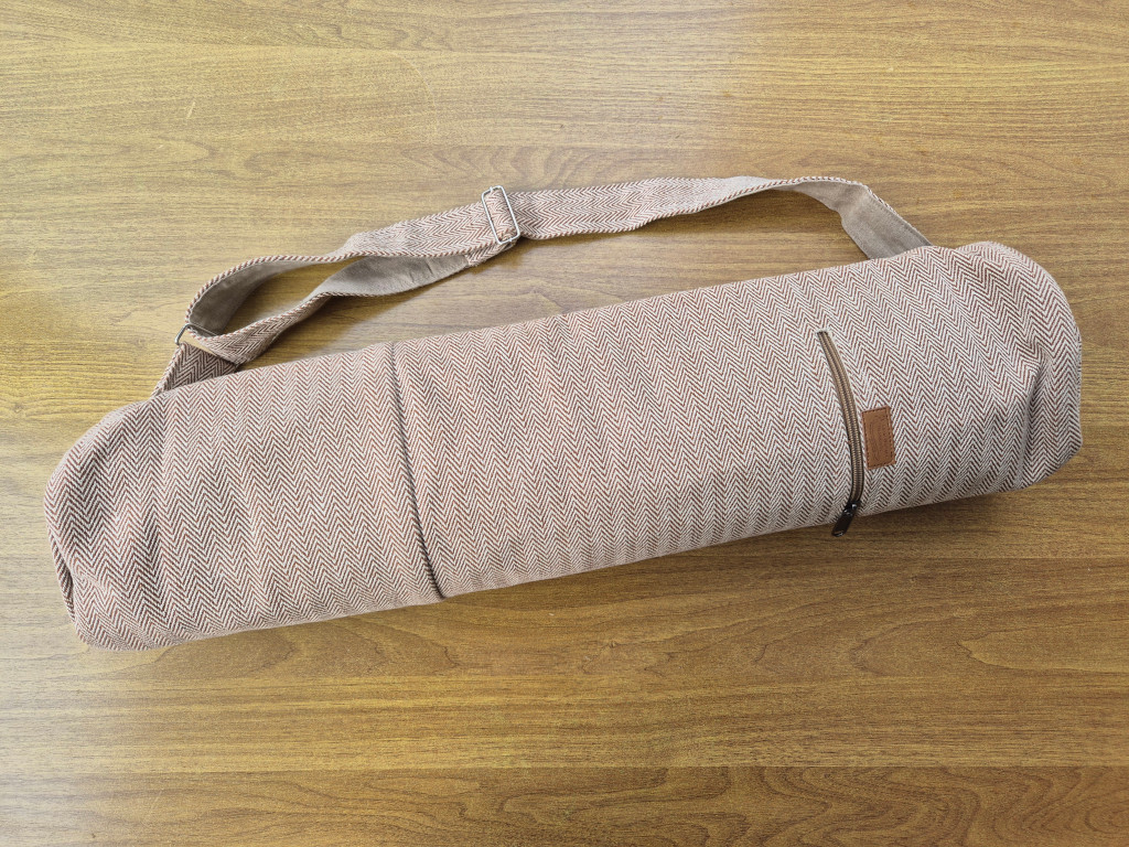 Ergänzend gehört zu dieser Yoga-Matte eine farblich abgestimmte Transporttasche, ebenfalls handgefertigt von Local Women’s Handicraft (LWH). Matte und Tasche werden gemeinsam geliefert und bilden ein stimmiges Set aus traditioneller Handarbeit.