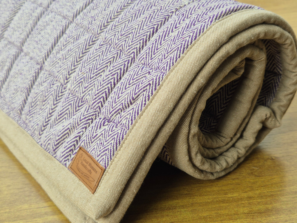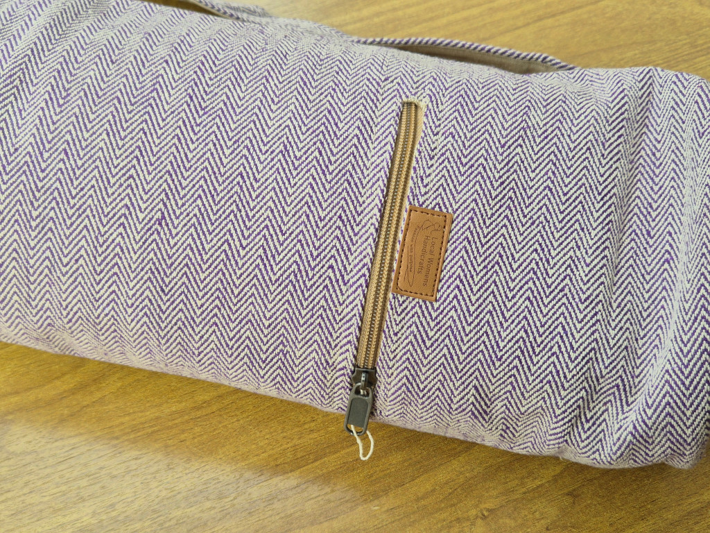Ergänzend gehört zu dieser Yoga-Matte eine farblich abgestimmte Transporttasche, ebenfalls handgefertigt von Local Women’s Handicraft (LWH). Matte und Tasche werden gemeinsam geliefert und bilden ein stimmiges Set aus traditioneller Handarbeit.