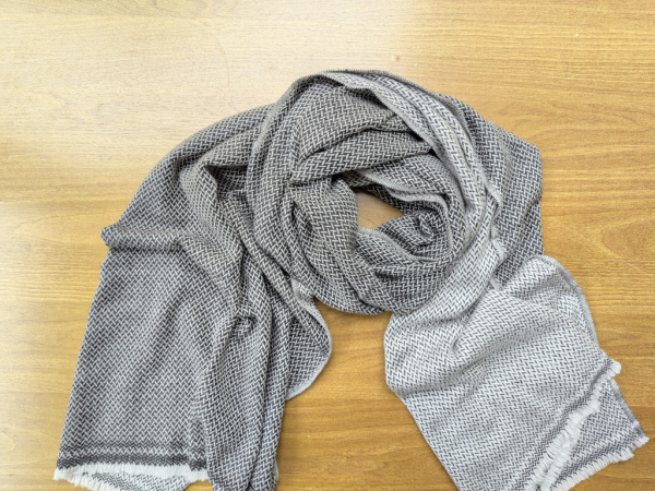 Kaschmir-Stola Dunkelgrau-Weiß | Jacquard-Muster, doppelseitig | Handgewebt von WSDO Pokhara | EINZELSTÜCK